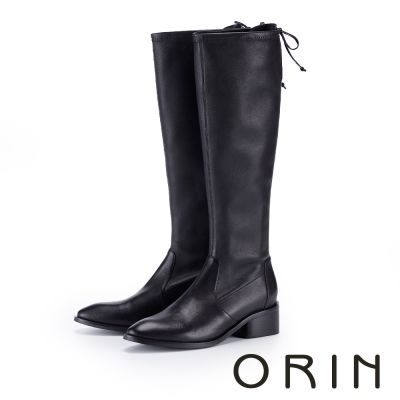 ORIN 彈力羊皮後蝴蝶結細筒長靴 黑色