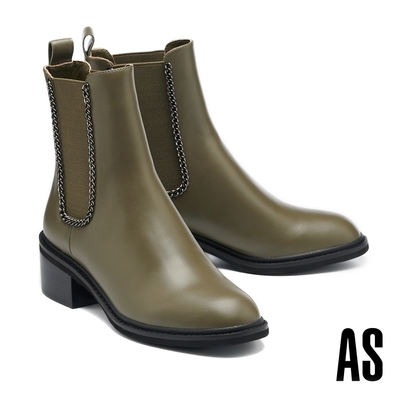 短靴 AS 帥氣時髦鏈條拼接牛皮切爾西高跟短靴-綠