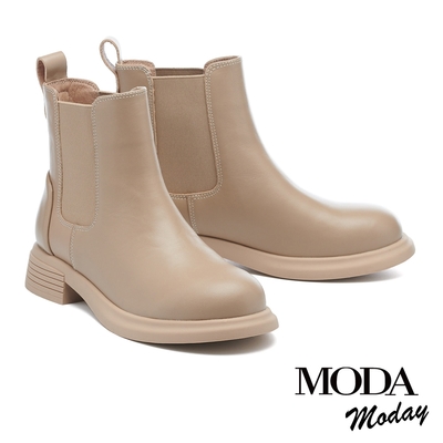 短靴 MODA MODAY 極簡質感純色牛皮圓頭切爾西厚底短靴-米
