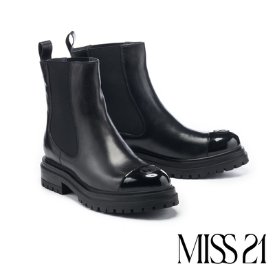 短靴 MISS 21 暗黑叛逆個性異材質拼接牛皮切爾西短靴-黑