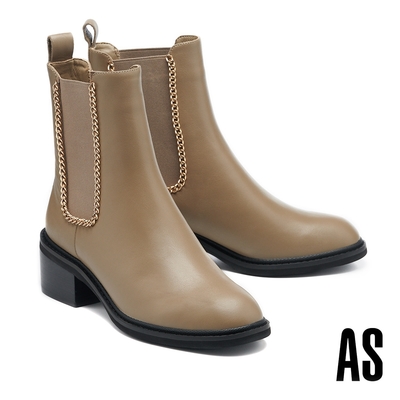 短靴 AS 帥氣時髦鏈條拼接牛皮切爾西高跟短靴-可可