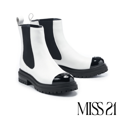 短靴 MISS 21 暗黑叛逆個性撞色異材質拼接牛皮切爾西短靴-白