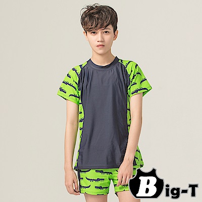 泳衣束胸 短袖鱷魚拼色泳衣褲組(M-3XL) BIG-T