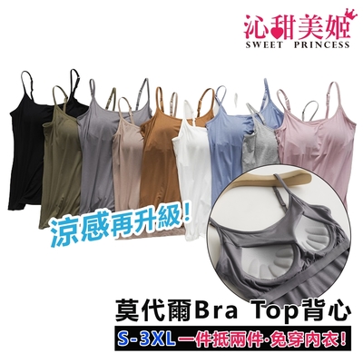 涼感莫代爾棉Bra Top細肩帶背心(大尺碼 帶胸墊 休閒服 運動服 家居服/免穿內衣BraT)$348