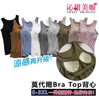 涼感S-3XL大尺碼莫代爾帶胸墊Bra Top寬肩帶背心(BraT 免穿內衣 休閒服 運動服 家居服 睡衣/舒適)$348