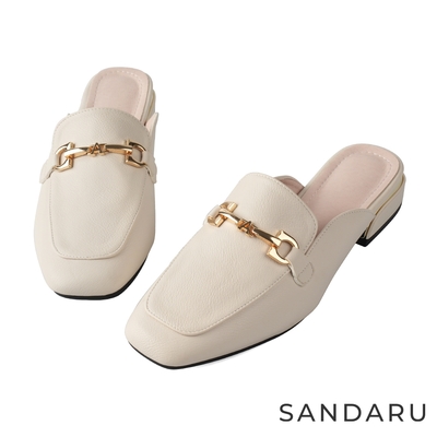 山打努SANDARU-穆勒鞋 方頭深口素面低跟拖鞋-米白