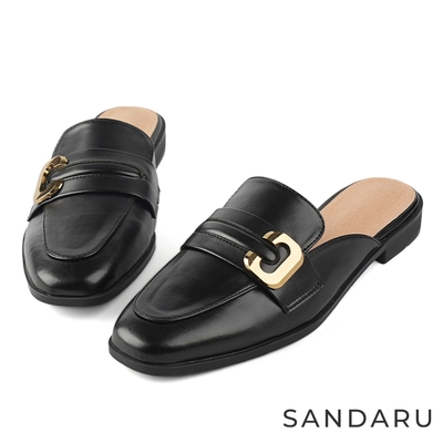 山打努SANDARU-穆勒鞋 C字金飾低跟拖鞋-黑