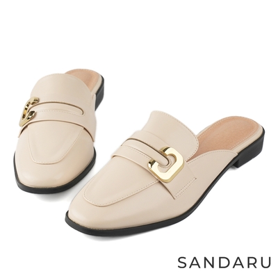 山打努SANDARU-穆勒鞋 C字金飾低跟拖鞋-杏
