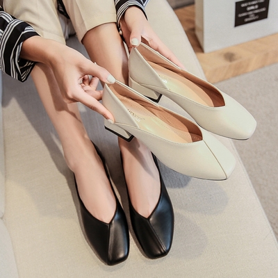 【LN】現+預 粗跟英倫淺口樂福休閒鞋(休閒鞋/女鞋/百搭)
