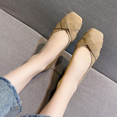 可後踩.MIT韓式歐膩素面皮革流線拼接平底方頭包鞋.白鳥麗子