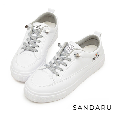 - 山打努SANDARU-小白鞋 素面綁帶真皮純白休閒鞋-白$1,390活動