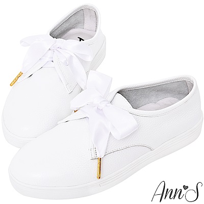 Ann’S第二代超軟真牛皮小清新附緞帶小白鞋