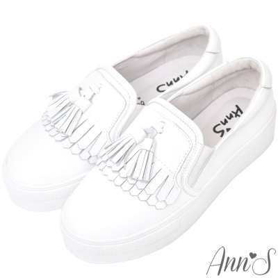 Ann’S激瘦第三代!!!全真牛皮流蘇厚底小白鞋-白