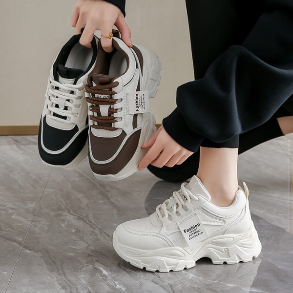 運動鞋.韓版顯瘦拼色繫帶厚底老爹鞋.白鳥麗子