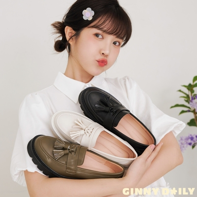 ANNSTAR 居妮聯名- 文藝清新 厚底超輕量流蘇樂福鞋6cm-黑