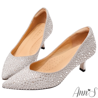 Ann’S華麗滿鑽極度閃耀-優美弧線V口低跟尖頭婚鞋5cm-銀