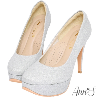 Ann’S MIT系列不勾紗閃亮面料防水台厚底高跟鞋-銀