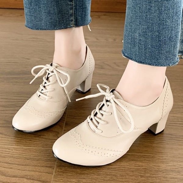 高跟靴.MIT日系皮革雕花紋繫帶踝靴.白鳥麗子