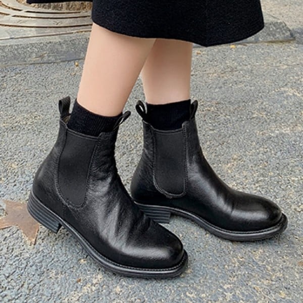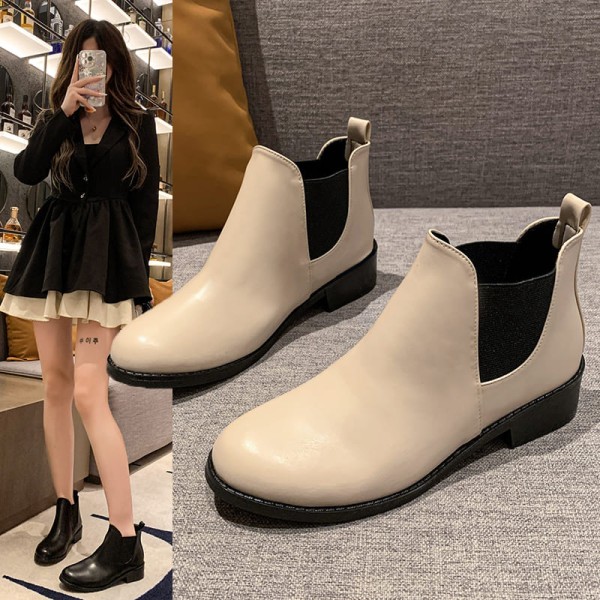 商店粗跟靴.街頭百搭皮革襪套式切爾西短靴.白鳥麗子