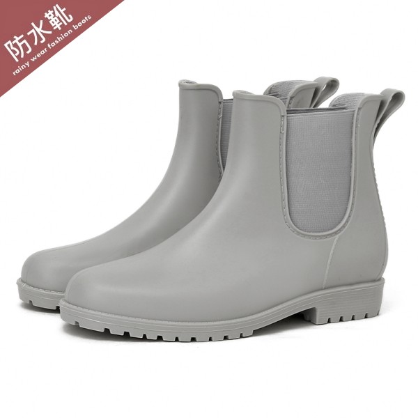 商店【37-43全尺碼】MIT百搭切爾西拼接短筒防水雨靴 - 灰色