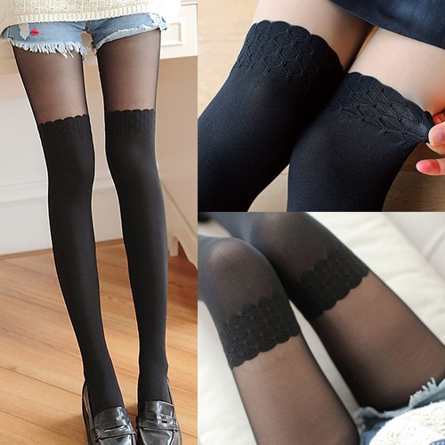 商店唐朵拉 膚色 黑色 熱銷日版韓系蕾絲雕花修飾美腿超顯瘦透氣輕薄膝上假大腿/貼身褲襪 (215)