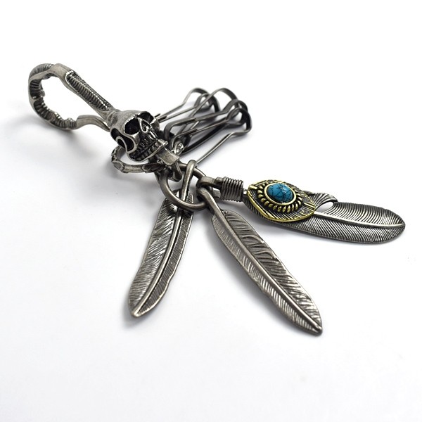 鑰匙圈 帥氣骷髏藍珠羽毛【NF117】掛於包包/腰間