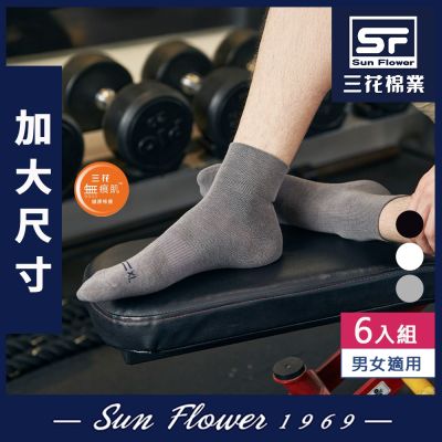 襪.襪子 三花Sun Flower 無痕肌加大襪1/2運動襪.大尺碼襪(6雙組)$1,000