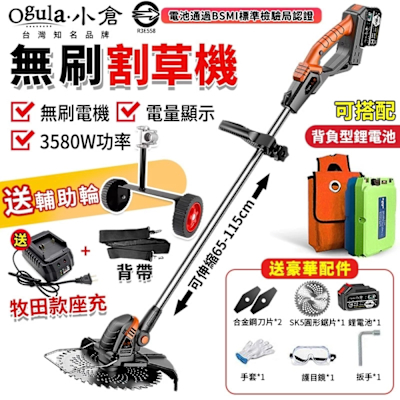 Ogula小倉 割草機 除草機 可伸縮割草機 無線割草機 送可拆卸輔助輪 電池BSMI檢驗合格(台灣品牌 售後保障)15節2電$5,723$5,899