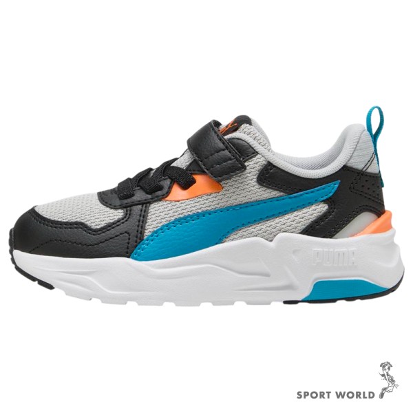 Puma 慢跑鞋 中童鞋 緩震 魔鬼氈 Trinity Lite AC+ PS 灰黑藍【運動世界】39148015