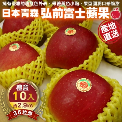 【天天果園】日本青森弘前富士蘋果36粒頭-10入禮盒(約2.9kg)$1,020$1,080