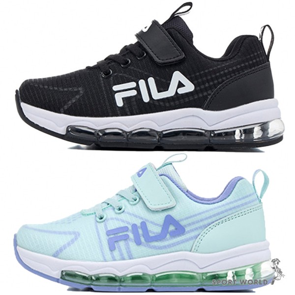 FILA 慢跑鞋 大童鞋 魔鬼氈 氣墊 黑/水藍【運動世界】3-J811Z-001/3-J811Z-669