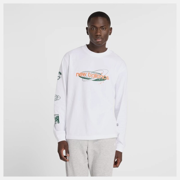 NEW BALANCE 長袖 NB 白色 LOGO 休閒 薄長T 男 MT43575WT