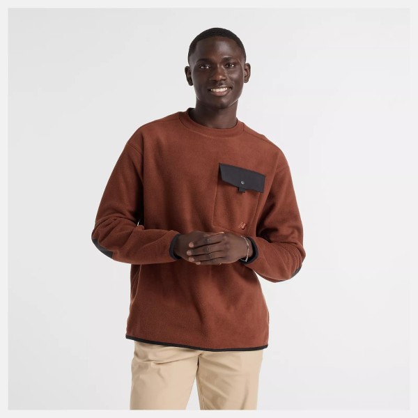 NEW BALANCE 長袖 NB 棕色 毛絨 口袋 休閒 上衣 男 MT43531ROK
