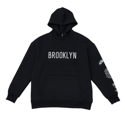 NBA 寬版 隊伍圖樣印刷 連帽T恤 籃網隊 黑色-3455105520$1,567