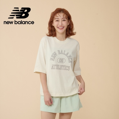 【New Balance】圓領刺繡字母短袖上衣_女性_牙白色_WT31551SAH$999