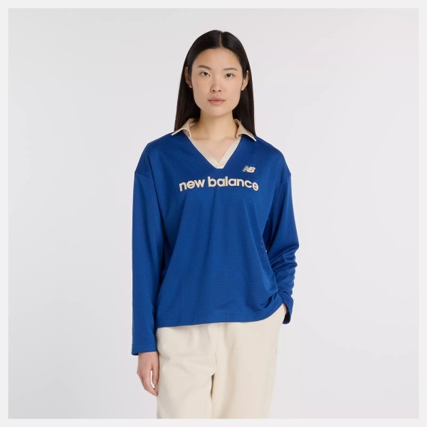 商店NEW BALANCE 長袖 NB 藍金 V領 網眼 復古球衣 女 WT53530GAB