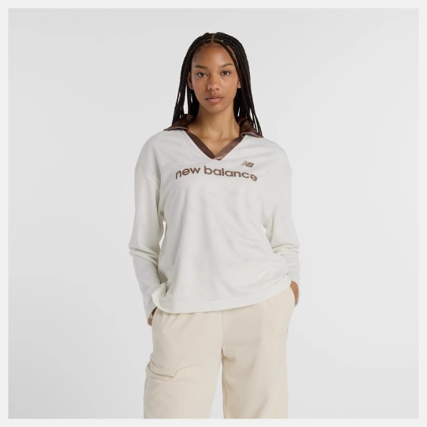 商店NEW BALANCE 長袖 NB 白咖 V領 網眼 復古球衣 女 WT53530SST