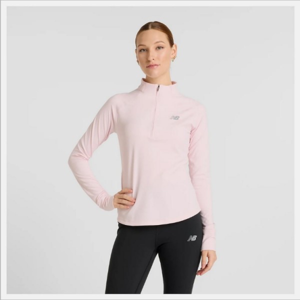 商店NEW BALANCE 長袖 NB 櫻花粉 半開襟 修身 運動 女 WT51201RSG