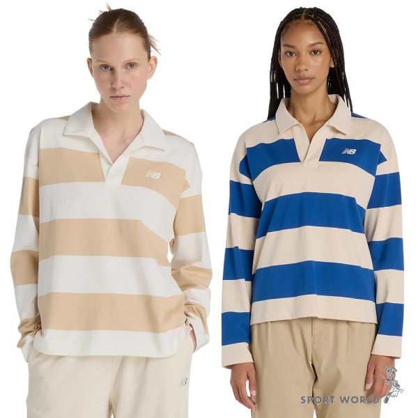 New Balance 長袖上衣 女裝 條紋 純棉 卡其/藍【運動世界】WT53522DLA/WT53522GAB
