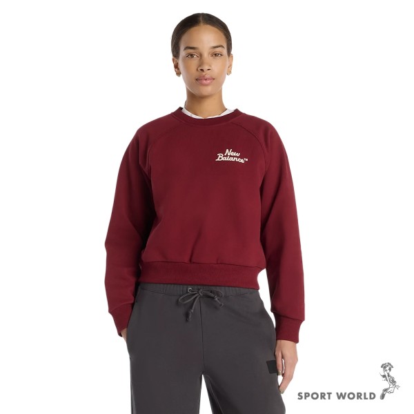商店New Balance 長袖上衣 女裝 大學T 純棉 紅咖【運動世界】WT61L61ZMCR