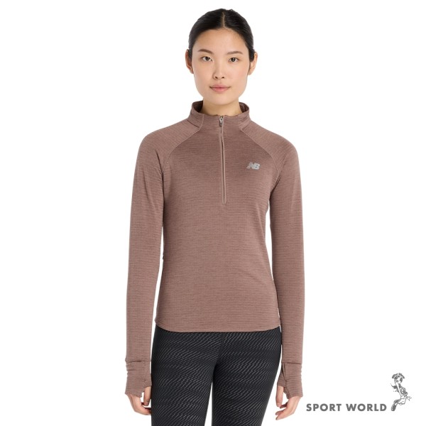 New Balance 半開襟長袖上衣 女裝 保暖 棕【運動世界】WT43200EAT