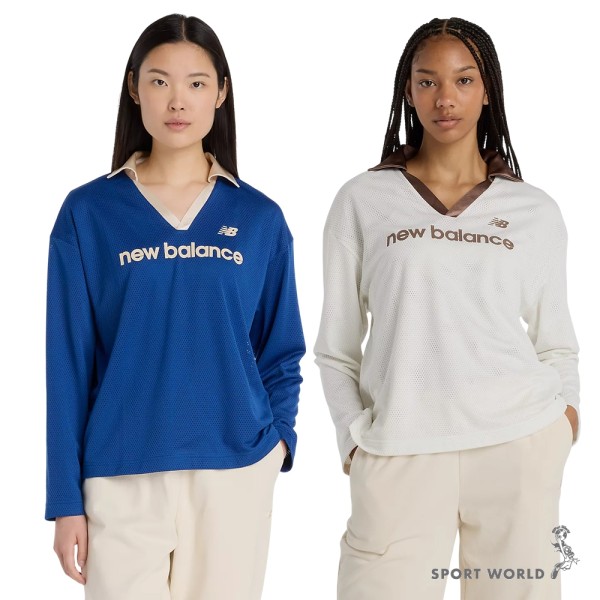 NEW BALANCE 長袖 NB 白咖 V領 網眼 復古球衣 女 WT53530SST