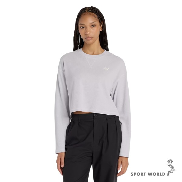 New Balance 長袖上衣 女裝 短版 美規 灰【運動世界】WT53507AHH