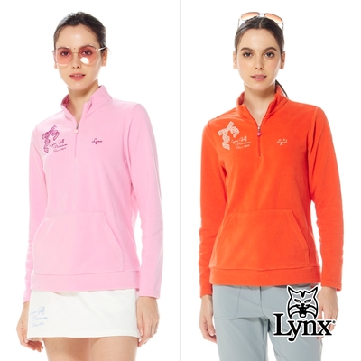 【Lynx Golf】女款保暖內刷毛材質變色膠印隱形拉鍊口袋設計長袖立領POLO衫/高爾夫球衫(二色)$2,112