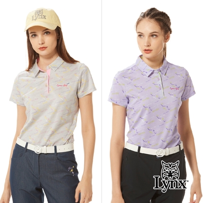 【Lynx Golf】女款純棉雙絲光面料滿版鳥類剪影印花短袖POLO衫/高爾夫球衫(二色)$2,112