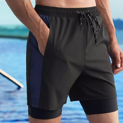 Biki.泳褲M-3L波頓雙層短褲泳褲