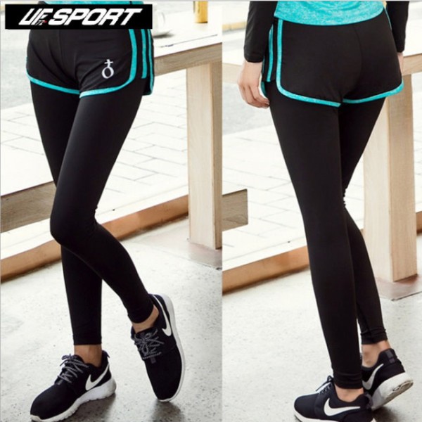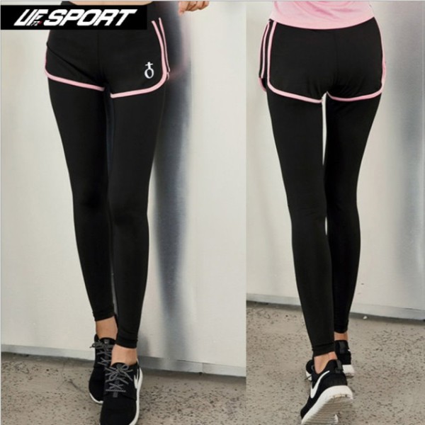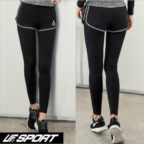 商店【UF72+】UF-W17121/黑粉/時尚高彈力女款速乾瑜珈輕壓假兩件運動褲