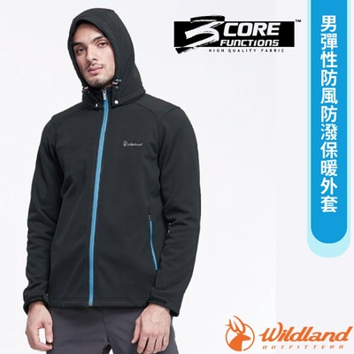 【荒野 WildLand】男 彈性防風防潑保暖外套.休閒機能刷毛連帽夾克_0A82926-54 黑