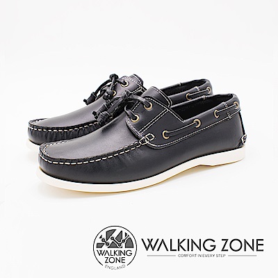 WALKING ZONE 英倫 真皮手工白線車縫帆船雷根男鞋-深藍(另有咖啡)