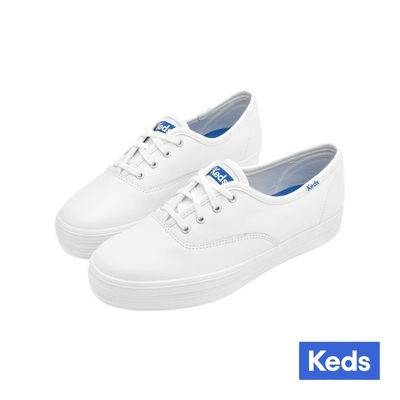 Keds TRIPLE KICK 學院風厚底帆布小白鞋 9203W133185